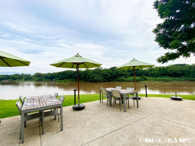 外側のテラス席もあります。川の風景を見ながらの朝食は格別のものがありますね。