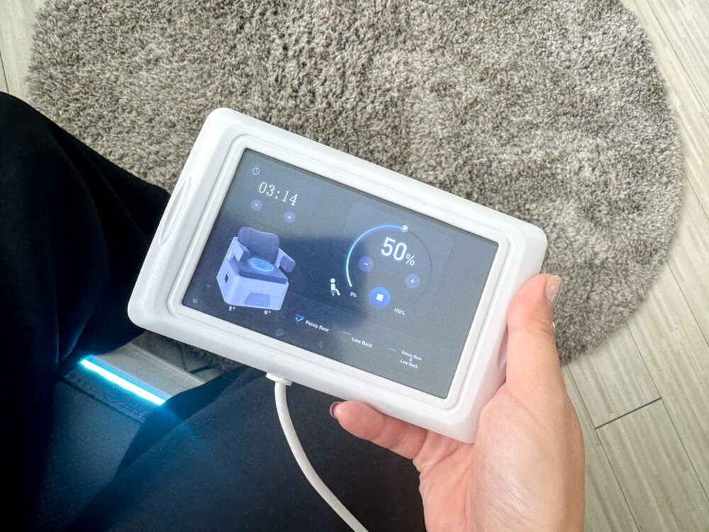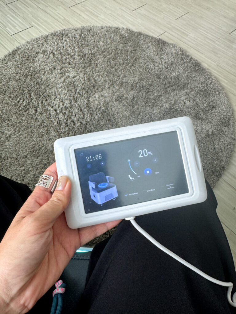写真だと伝わりづらいですが、椅子が細かく振動して、ウイーンと骨盤を刺激しているのが分かります。