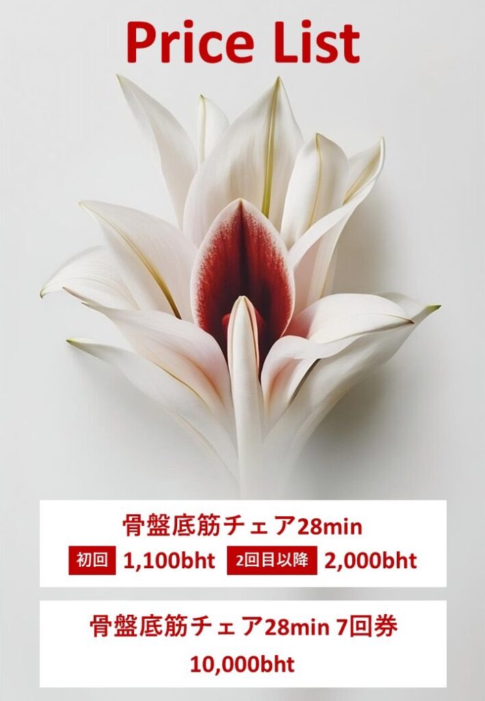 初回1,100バーツ・2回目以降2,000バーツの骨盤底筋トレーニングチェア。