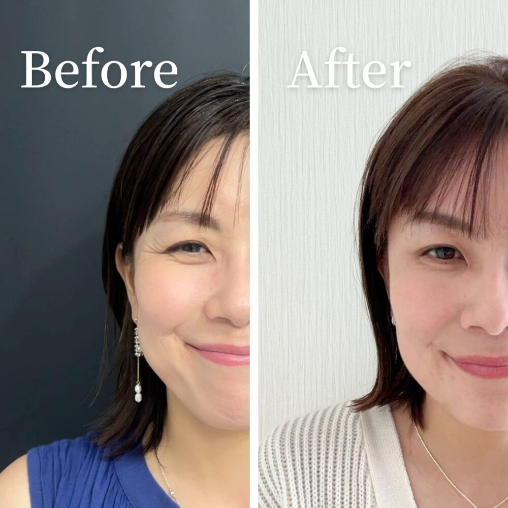 Beforeでははっきりあったクマが、Afterではきれいに消えていて衝撃を受けました。
