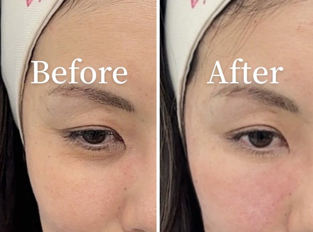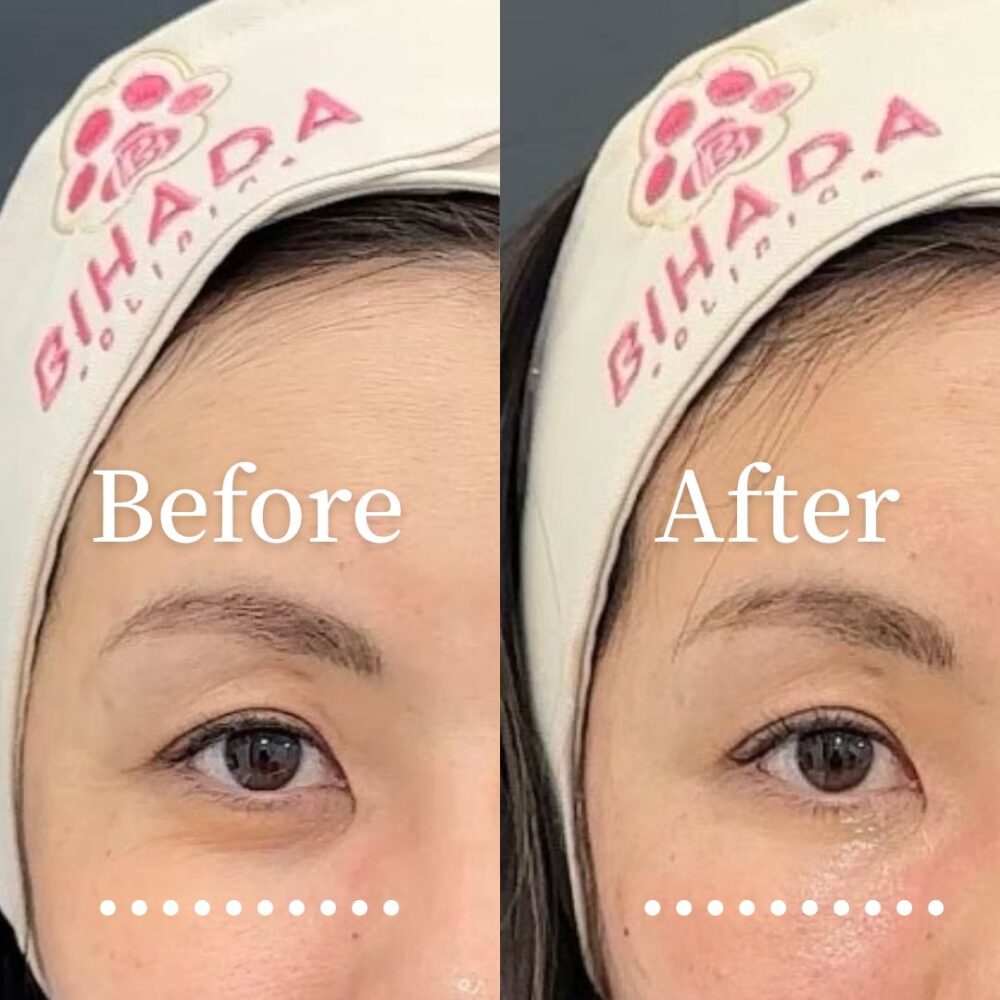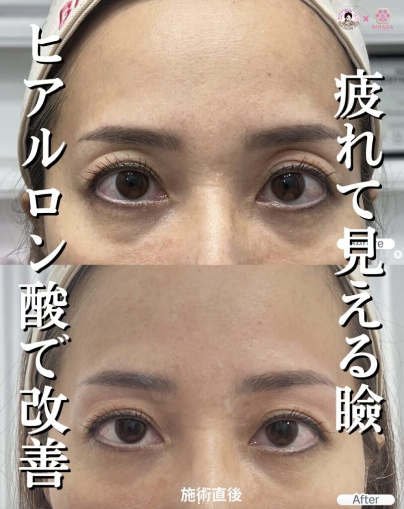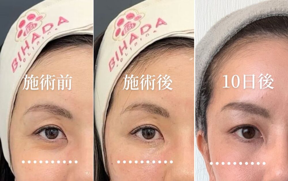 施術直後には、目の下のくぼみや、ちりめんジワが明らかになくなっていて感動…!