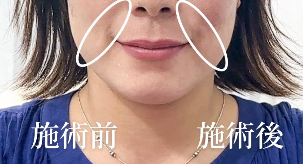 口角の横にヒアルロン酸を入れると皮膚に張りが出て、シワがなくなるんだそう。