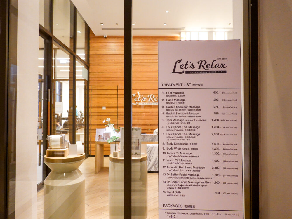 人気マッサージ店・Let’s Relaxも入っていました。フライトの疲れもバッチリ癒せます。