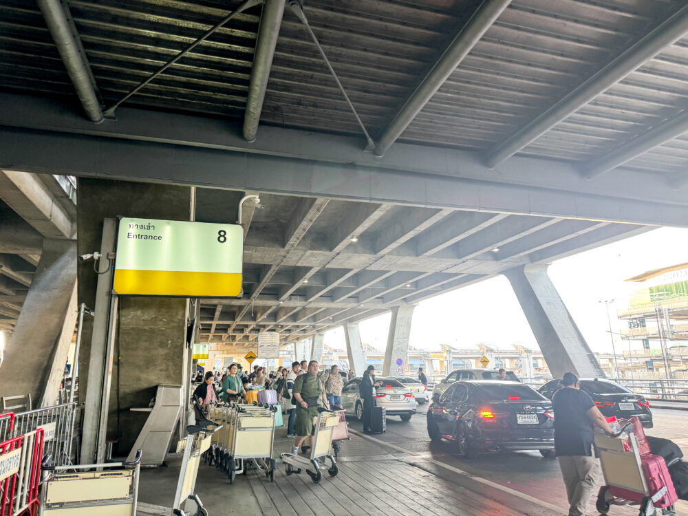 スワンナプーム空港の到着階(2階)から外に出て、8番ゲートの前で待ちます。
