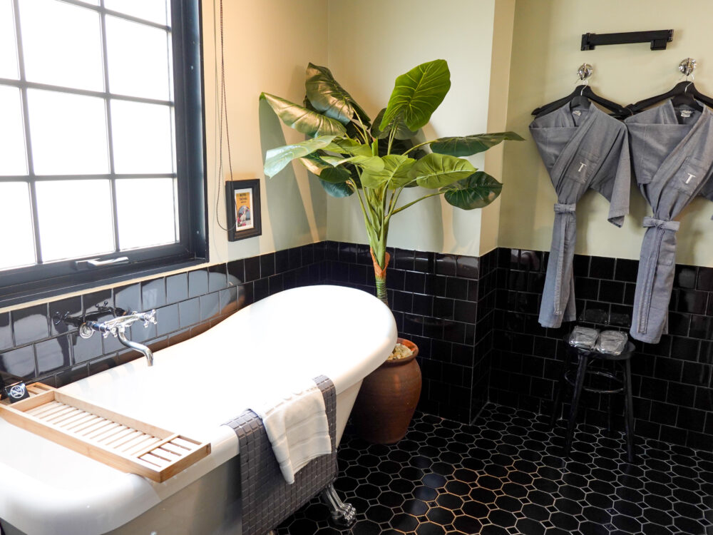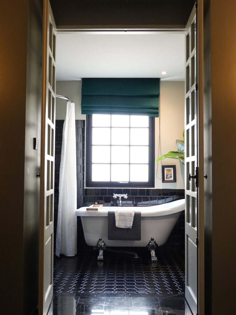 特に印象的なのがヴィンテージ風の独立バスタブ。