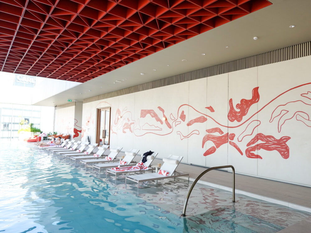 最上階のプールは、ジルコン(地球上で最も古い鉱物としても知られる天然石)をモチーフにしたデザイン。