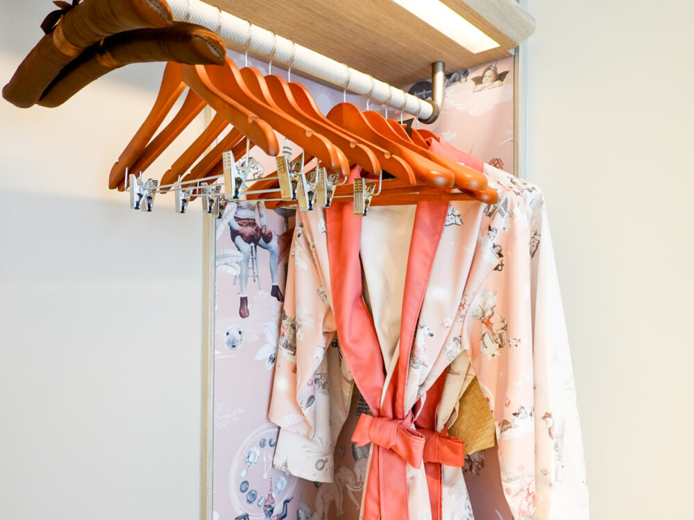 タイ人アーティスト・Nakrob Moonmanas(ナクロブ・ムーンマナス)による特徴的なイラストが描かれたバスローブがとっても可愛いです。