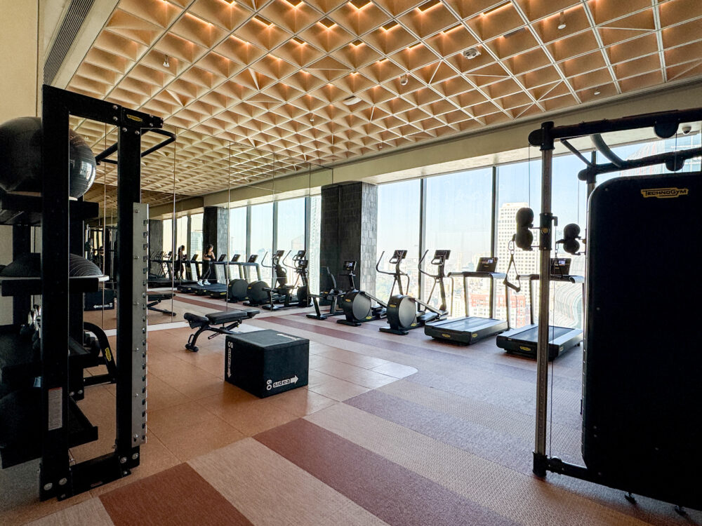 プールの横には24時間利用可能なフィットネスジム。