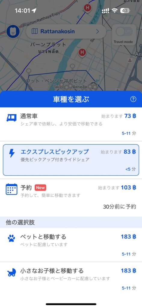 在タイ者にも日常の足として便利なアプリですが、観光客にとっても楽しく使い勝手の良いアプリでおすすめです。