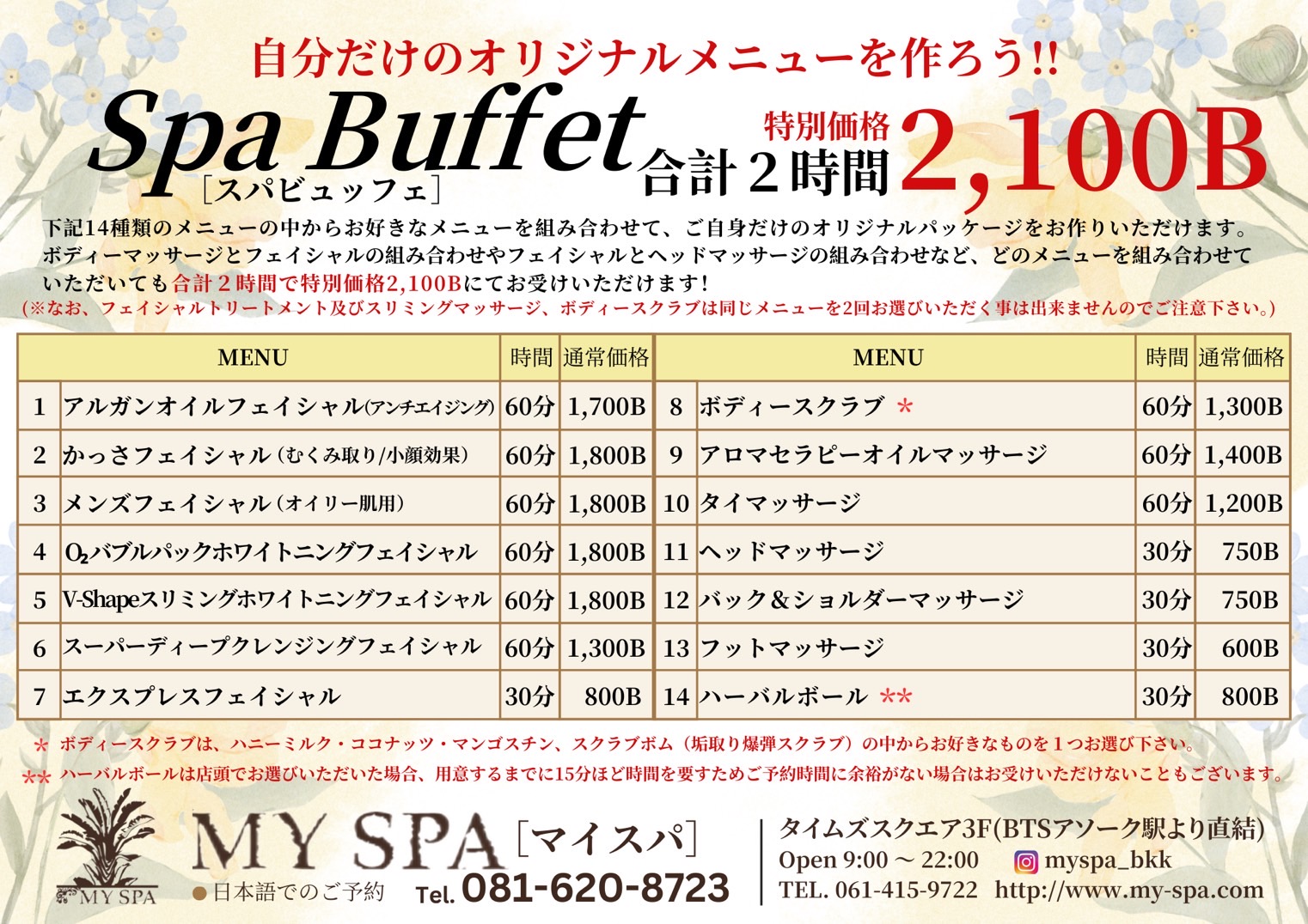 マイスパシグネチャーパッケージ(3時間)通常3,300B→3,000Bに!