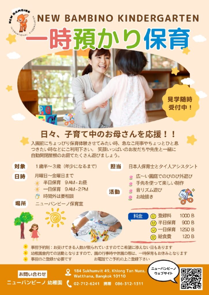 ニューバンビーノ幼稚園の一時保育