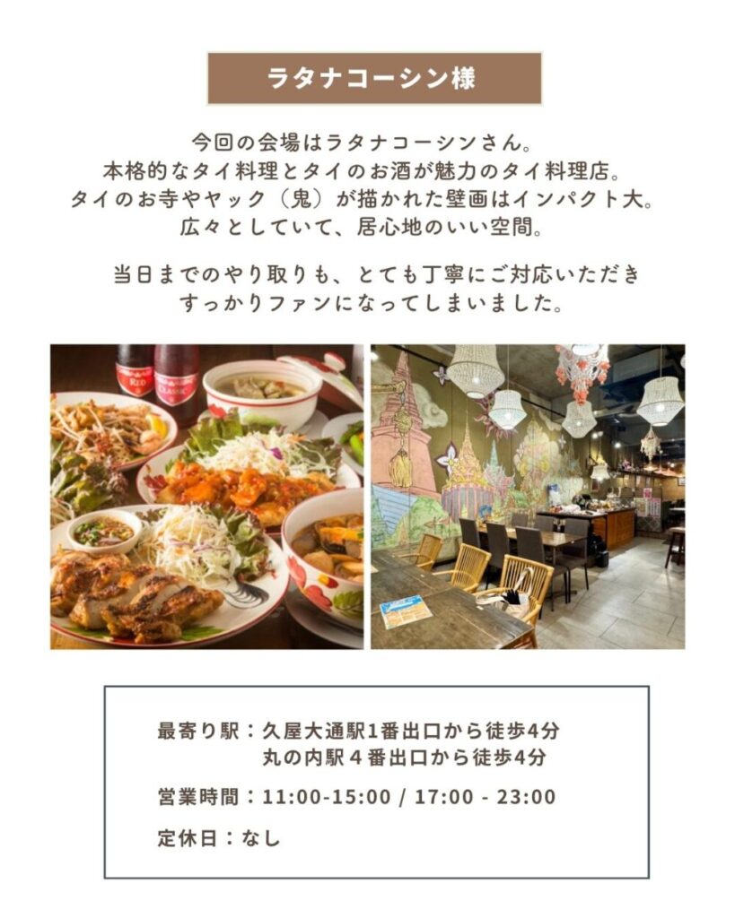 1月24日(土) 名古屋にあるタイ料理屋さん「ラタナコーシン」さんにて、タイが好きな人で集まってタイに想いを馳せるタイオフ会を開催しました!