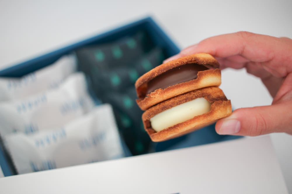 濃厚でコクのある生チョコレートを、香ばしく焼き上げたラングドシャでサンド。