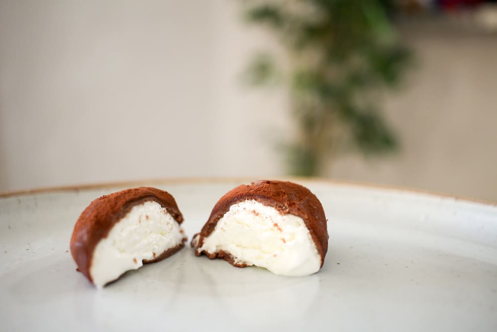 雪のような小さな丸いフォルムがまず可愛い。そして中には、なめらかでコクのある生クリーム。